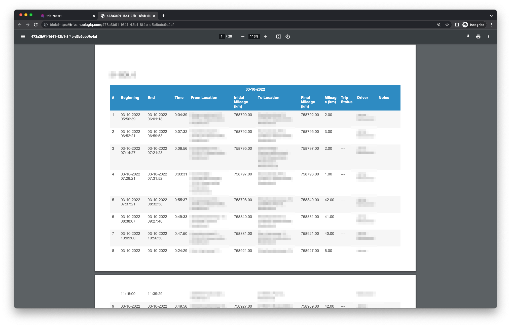 This is the documentation for the trips report application by HubLogiQ. The app is available both in English and in Dutch.